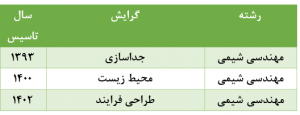 - دانشجویان دانشگاه صنعتی کرمانشاه در مقطع کارشناسی ارشد مهندسی شیمی می توانند در گرایش های مختلف بر اساس جدول ذیل تحصیل نمایند. این گرایشها با توجه به نیاز روز صنایع کشور و چشمانداز توسعه علمی دانشگاه طراحی شدهاند و امکان فعالیت تخصصی در حوزههای نوین مهندسی شیمی را برای دانشجویان فراهم میکنند.