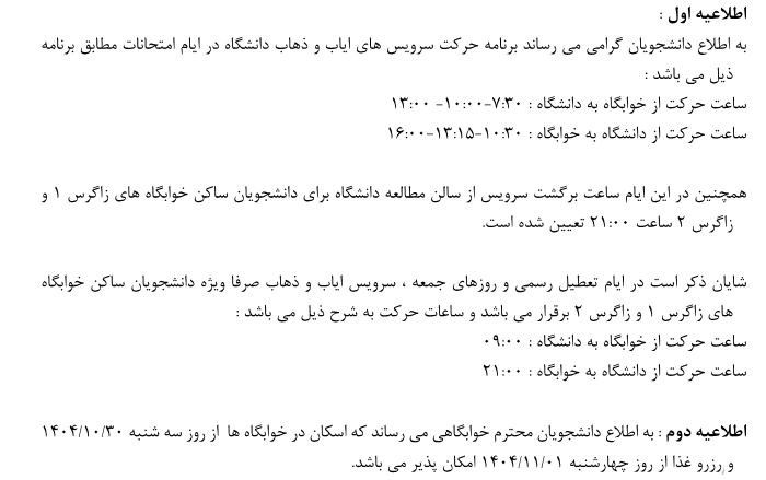 پیرو اطلاعیه قبلی، یادآوری می نماید امتحانات پایان ترم نیمسال جاری دانشجویان از روز پنجشنبه 2 بهمن ماه 1404 و به صورت حضوری برگزار خواهد شد. دانشجویان عزیز، جهت اطلاع از برنامه امتحانی گزارش 428 سامانه گلستان (گزارش های آموزش …