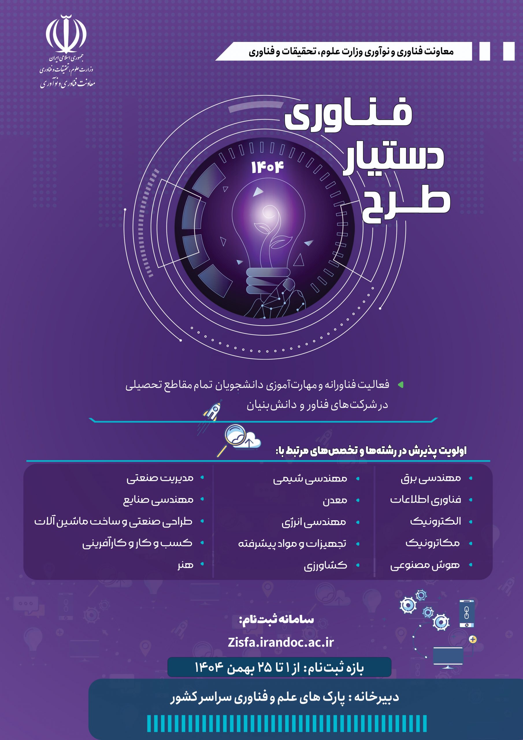 دوره چهارم طرح ملی دستیـار فناوري با تاکیـد بر مهـارت آموزي دانشـجویان شاغـل به تحصـیل در رشـته هاي مهندسـی برق، فناوري اطلاعات، الکترونیک، مکاترونیک، هوش مصـنوعی، مهندسـی شیمی، معدن، مهندسی انرژي، کشاورزي، مدیریت صـنعتی، مهندسـی صـنایع، هنر، کسب و کار …